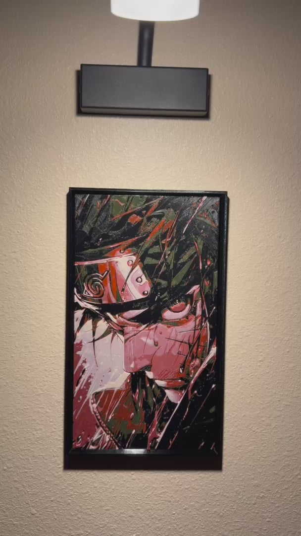 Dark Anime Ninja Filament Painting – Framed 3D Printed Wall Art