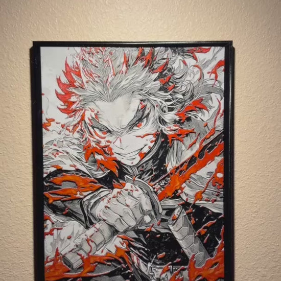 Flame-Wielding Anime Warrior Filament Painting – Framed 3D Wall Art